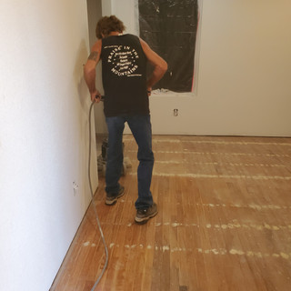 Wednesday Morning Johnny and My husband began sanding the living room and bed room floor that had been preped two days before. We worked from 800 to 400 and some time during the day we realized we needed a drum sander to get the job done